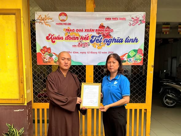 Sáng ngày 12/02/2026, Ủy ban MTTQ Việt Nam phường Phú Lâm phối hợp Chùa Thiên Trước tổ chức chương trình trao quà "Xuân đoàn kết - Tết nghĩa tình" - Xuân Bính Ngọ năm 2026. Tại chương trình, Ủy ban MTTQ Việt Nam phường Phú Lâm đã trao thư cảm ơn đến chùa Thiên Trước và phối hợp trao 150 phần quà (mỗi phần gồm gạo, mì, đường) cho các hộ dân có hoàn cảnh khó khăn.